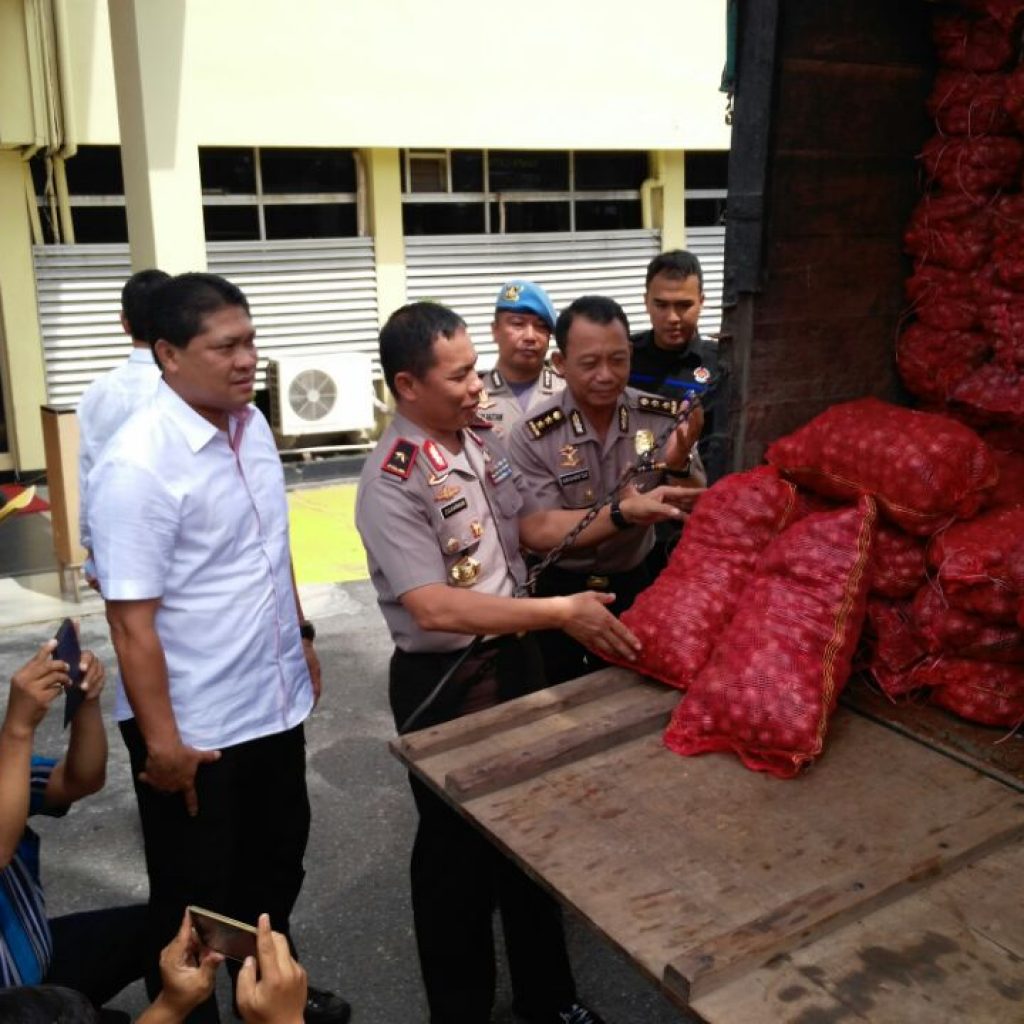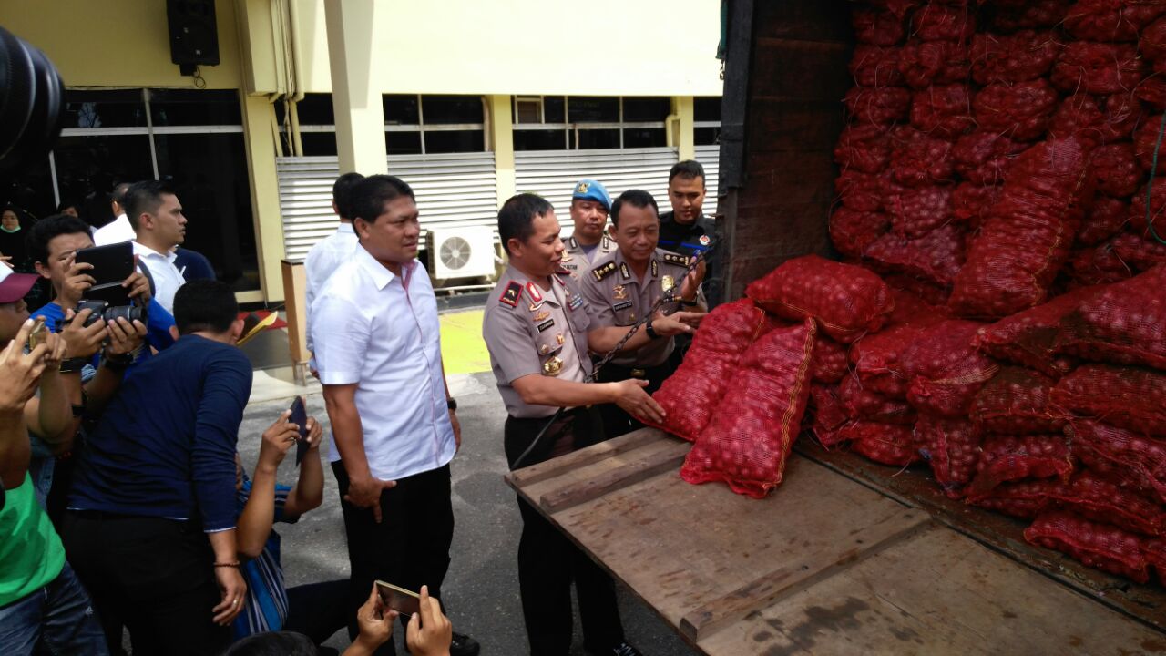 PEKANBARU- Sebanyak 16 ton lebih bawang merah ilegal diungkap jajaran Polda Riau. Masing-masing pengungkapan Dit Pol Air sebanyak 9 Ton, serta Ditreskrimsus Polda Riau sebanyak 7,4 Ton.