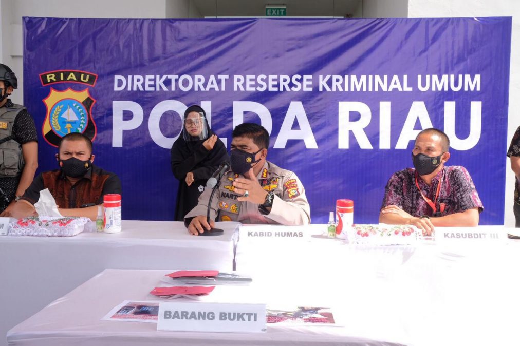 Kabid Humas Polda Riau, Kombes Pol Sunarto didampingi Dirkrimum Polda Riau dalam keterangan media mengatakan tersangka adalah pemain lama, yang sengaja datang ke Riau untuk melakukan aksinya.