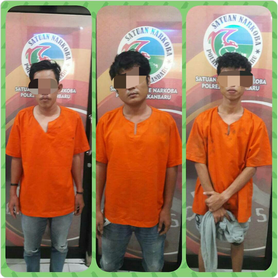 Kasatres Narkoba Polresta Pekanbaru, Kompol Dedi Herman melalui Kanit II, Iptu Noki Loviko mengatakan tiga orang lelaki diamankan secara terpisah.