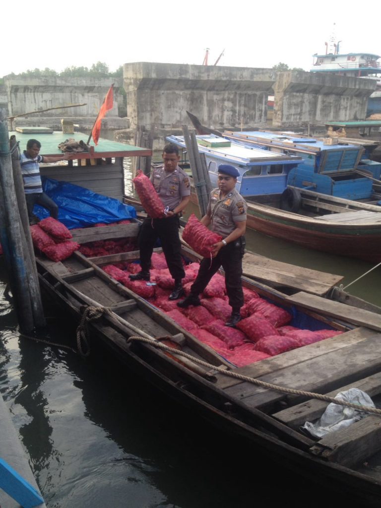 SIAGANEWS.CO – Sebanyak 300 kampit bawang merah diamankan Sat Polair Polres Dumai, Jum’at (16/9/2016). Bawang tersebut ditemukan dari dalam kapal motor yang sudah ditinggali Nahkoda dan ABKnya.