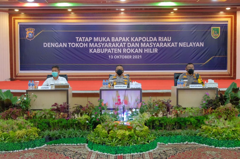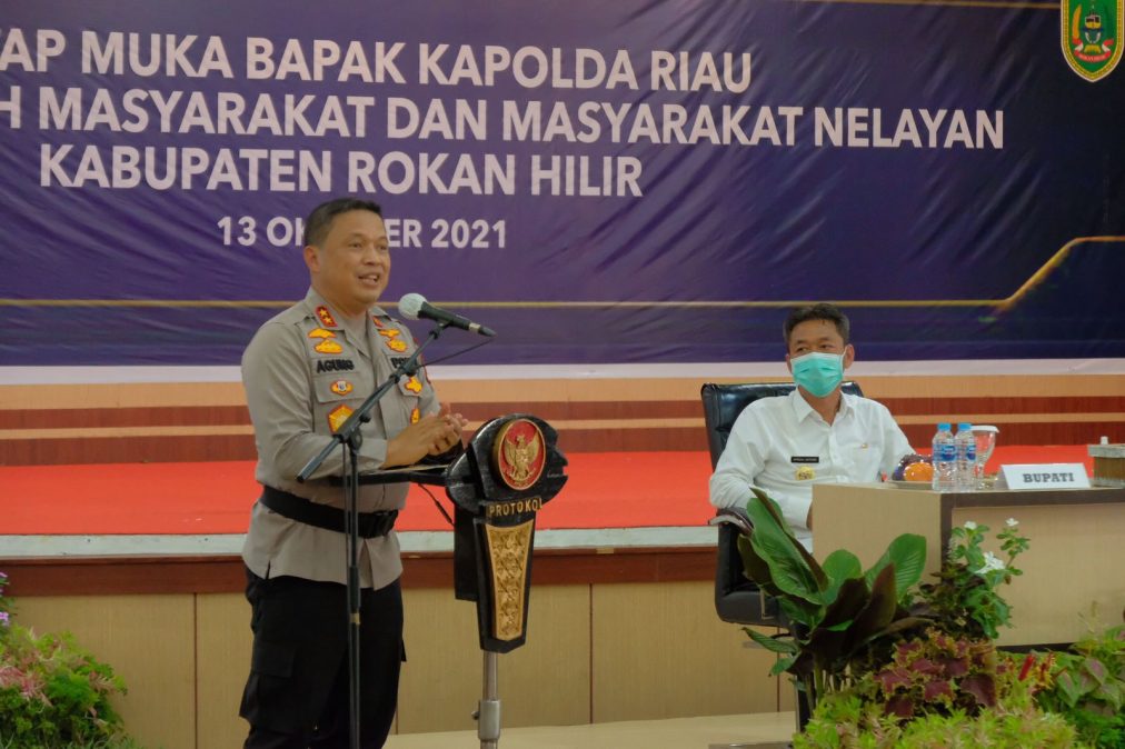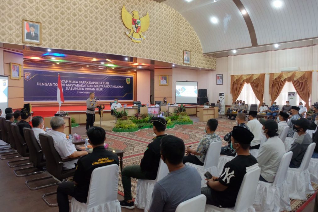 PEKANBARU – siaganews.id – Didampingi Forkopimda Rohil bertempat di gedung serba guna kabupaten Rohil di Bagan Siapi-api pada Rabu (13/10/2021), Kapolda Riau Irjen Agung Setya Imam Effendi menggelar pertemuan dengan para tokoh agama, tokoh masyarakat hingga nelayan kabupaten Rokan Hilir.