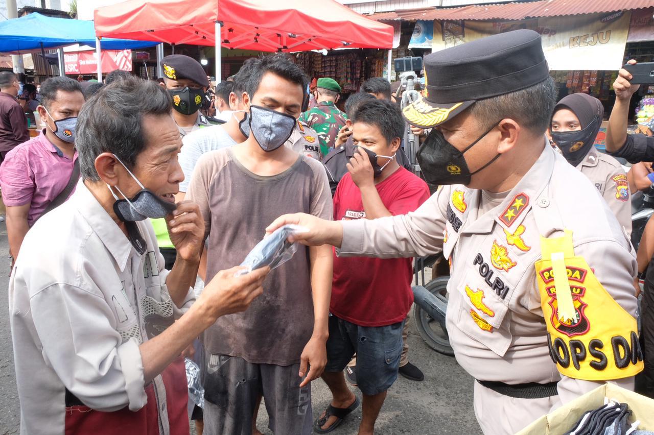 Riau – siaganews.id Kapolda Riau, Irjen Pol Agung Setya Imam Efendi, SH, SiK, Msi bersama Pangdam I Bukit Barisan, Mayjen TNI Hassanudin, SIP, MM mengajak Gubernur Riau, Gubernur Riau Drs Syamsuar dan Forkopimda Riau lainnya mengadakan kegiatan Peduli masyarakat Dalam Rangka Pencegahan Covid-19 di Pasar Senapelan atau biasa disebut Sebagai Pasar Kodim di Jalan A Yani Kota Pekanbaru, Rabu tadi pagi (10/02/2021)