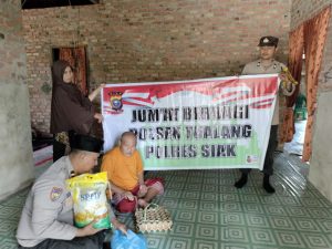 Perawang – siaganews.id – Polsek Tualang kembali menunjukkan kepeduliannya kepada masyarakat melalui program Jumat Berkah Berbagi. Kegiatan ini dilaksanakan di Jalan Maredan RT 02 RK 01 Dusun Satu, Kampung Maredan, Kecamatan Tualang, Kabupaten Siak, Jumat (26/9/2025) pagi.