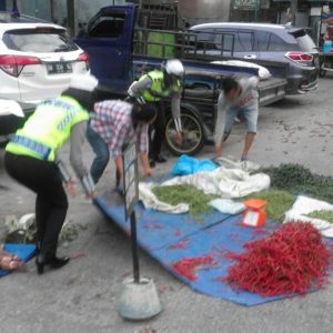 Diantara pedagang tersebut terlihat dua personil Polwan dari Satuan Lalu Lintas Polresta Pekanbaru turut membantu pedagang yang hendak mengemas barang barang dagangannya.