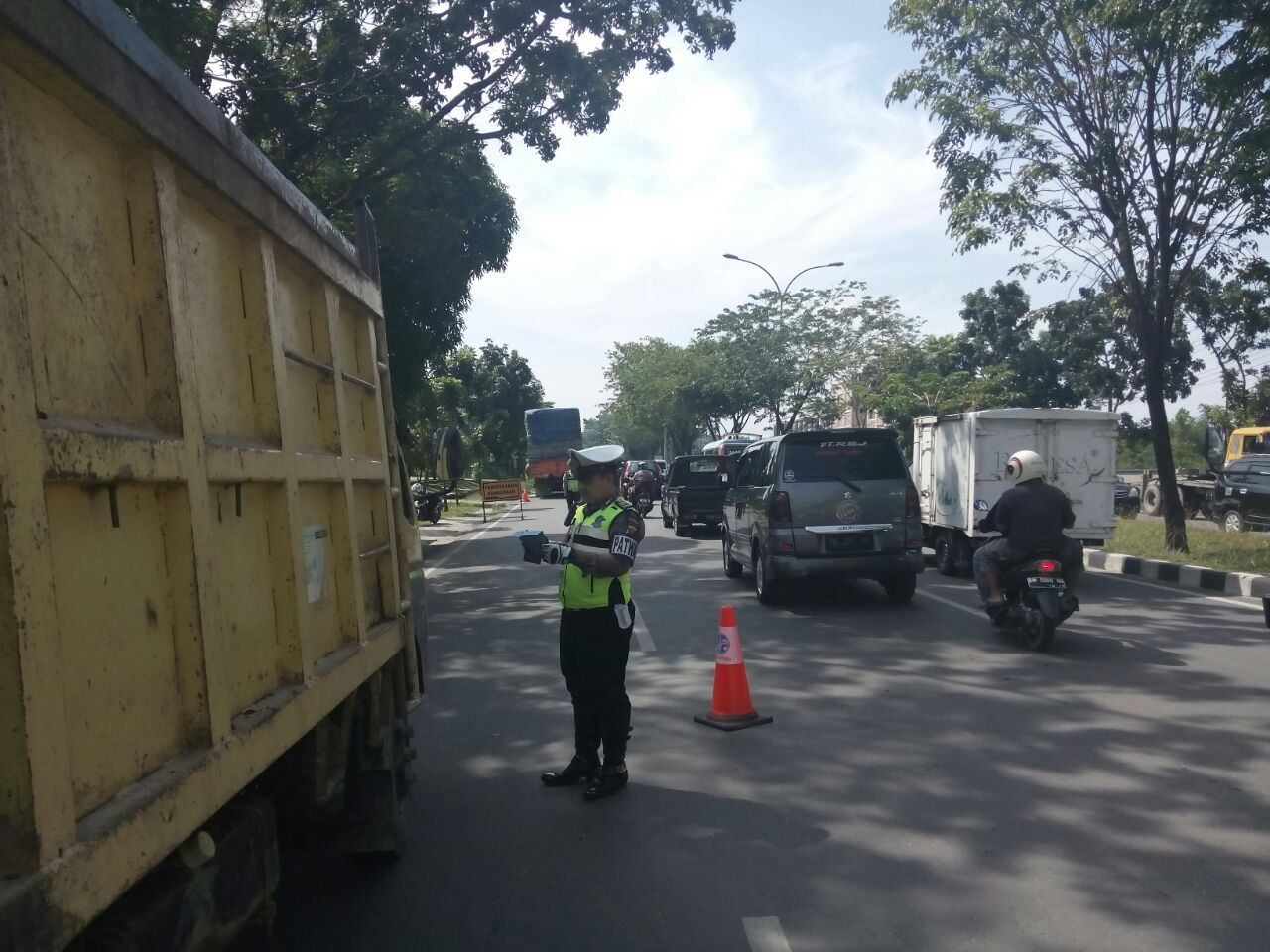 Penindakan terhadap pelanggaran lalu lintas ini dipimpin langsung oleh Wakasat Lantas AKP Hendrizal Gani, dengan sasaran kendaraan angkutan. Dengan kekuatan 25 personil lalu lintas sebanyak 37 lembar STNK, 10 lembar SIM, dan 3 Unit kendaraan bermotor terpaksa diberikan surat tilang. Selain muatan kendaraan yang berlebih menurut Hendri, keamanan dari barang muatan yang dibawa juga menjadi sasaran penindakan.