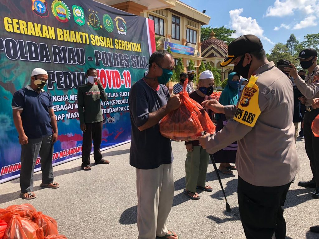 Polres Siak dan Polsek Jajaran membagikan 500 Paket Sembako kepada masyarakat yang terdampak Covid -19 diseluruh wilayah Kabupaten Siak.
