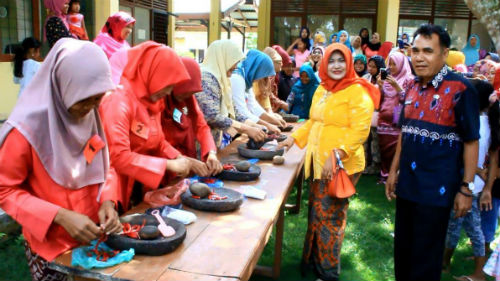 Kaum ibu ini terlihat antusias mengikuti lomba giling cabe ini. Lomba yang diadakan ini juga menjadi tontonan menarik warga sekitar.