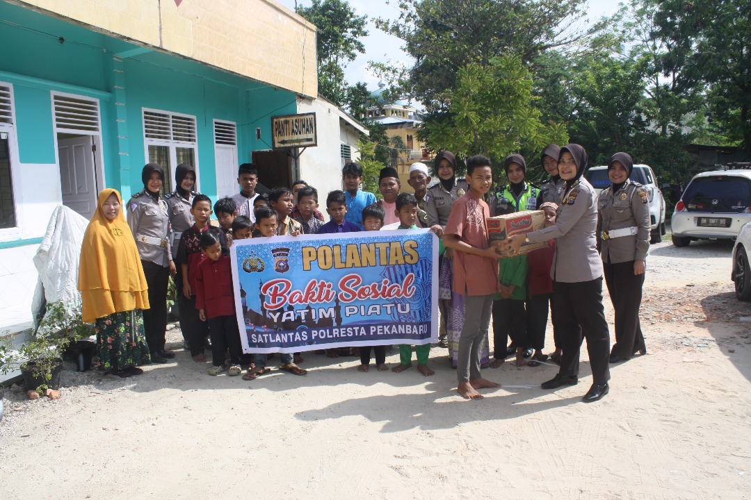 PEKANBARU, SIAGANEWS.CO – Berbagi di bulan penuh berkah, Satuan Lalu Lintas Polresta Pekanbaru kunjungi dua Panti Asuhan di Kota Pekabaru, Rabu (7/6/17).