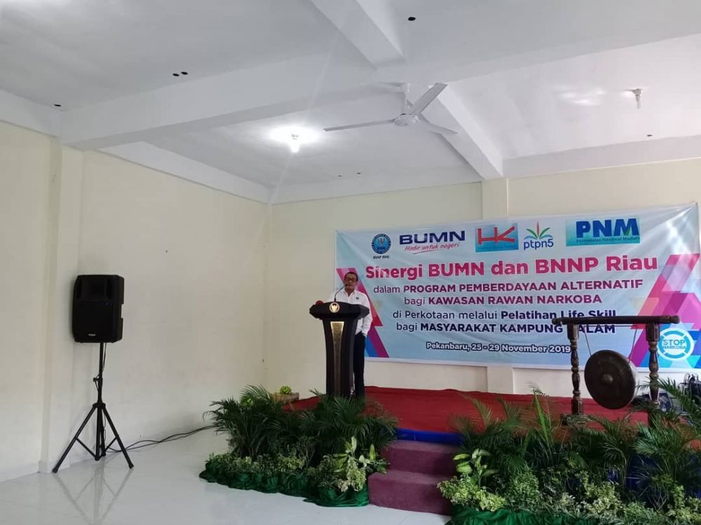 “Kampung Dalam terkenal pusat peredaran narkoba di Riau, jadi kita berusaha untuk merubah itu dengan melakukan pelatihan dan membentuk relawan anti narkoba,” katanya, Senin (25/11), saat memberikan kata sambutan pada acara sinergi BNNP Riau dan BUMN pelatihan life skill untuk masyarakat Kampung Dalam.