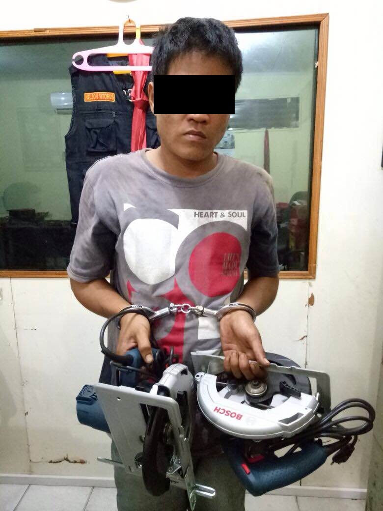 “Setelah semua bukti lengkap, dengan dipimpin Kanit Reskrim Ipda M Bahari Abdi, unit reskrim langsung meringkusnya. Dari tangan pelaku kita berhasil mengamankan dua unit alat mesin pemotong, dan pelaku kita jerat dengan pasal 363 KUHP ancaman kurungan diatas lima tahun.” terang Kapolsek.