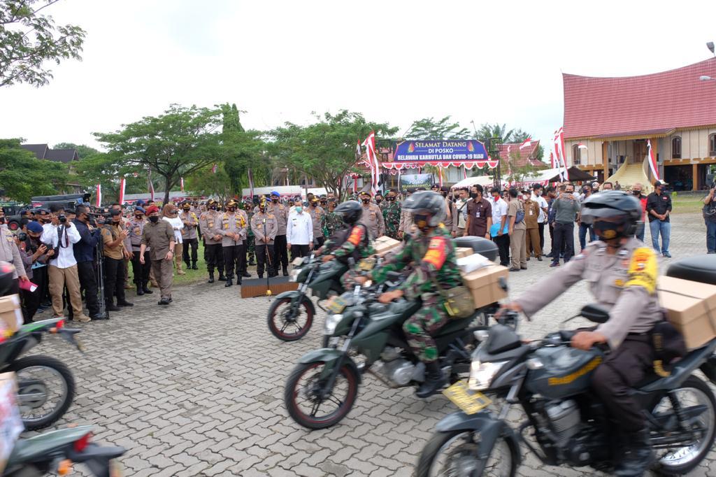 Dikesempatan ini, Kabaharkam Polri Komjen Pol Agus Andrianto yang didampingi rombongan Kakorsabhara, Kakorpolairud, Kakorbinmas, Dirsamapta Korsabhara, Dirpamobvit Korsabhara juga meninjau peralatan pemadaman karhutla dan Dasboard Lancang Kuning Nusantara juga memberikan bantuan secara simbolis kepada Satgas dan relawan serta melepas bantuan sosial, masker yang dibagikan oleh Bhabinkamtibmas dan Babhinsa serta mobil penyemprot disinfektan.