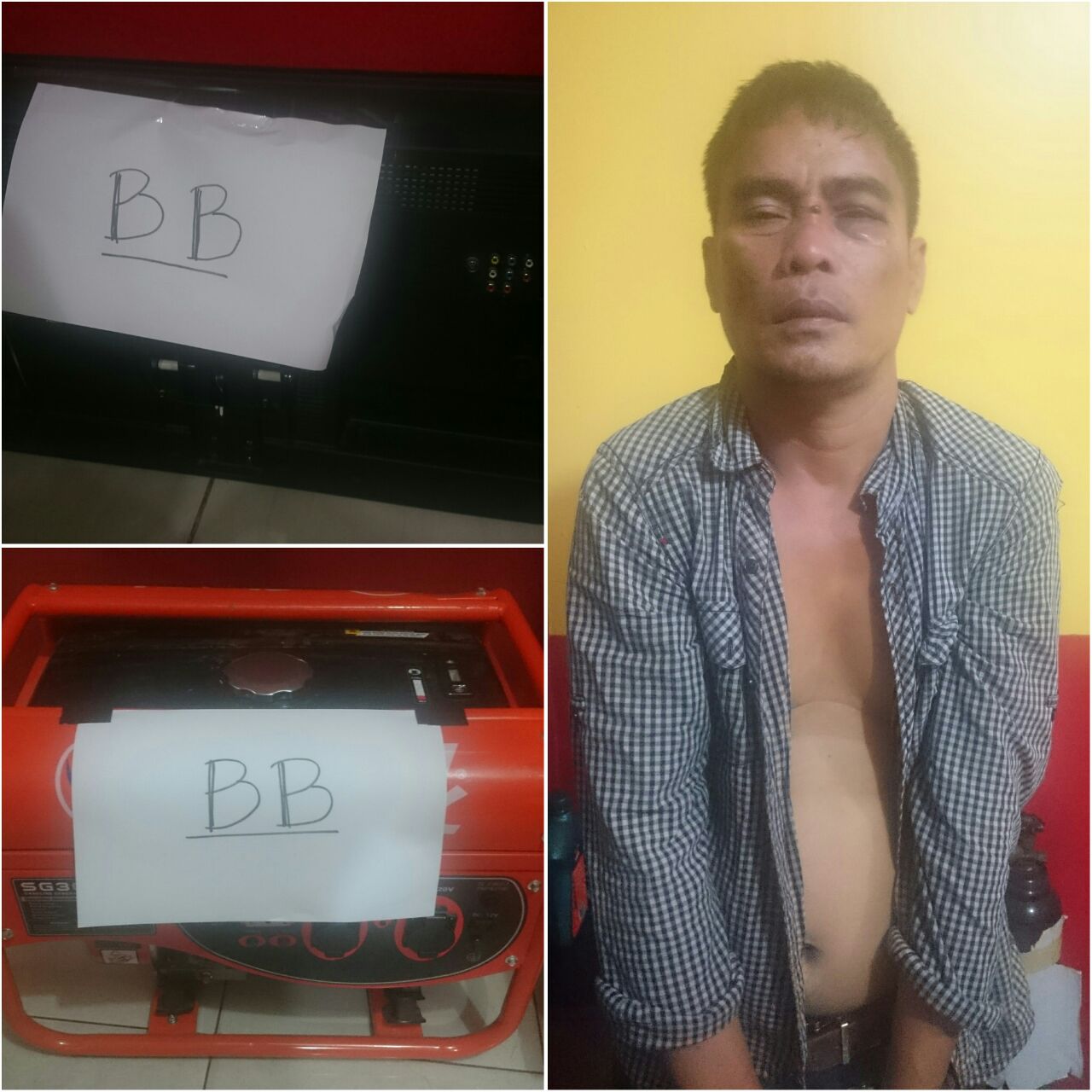 Pengungkapan ini berdasarkan penyelidikan polisi dari laporan curat pada tanggal 7 Oktober 2016 lalu. Tersangka masuk paksa ke dalam rumah Anita Dwi Hastuti. Selanjutnya menjarah mesin genset, televisi 32 inchi. Tersangka tak berkutik saat diringkus dan mengakui perbuatannya.
