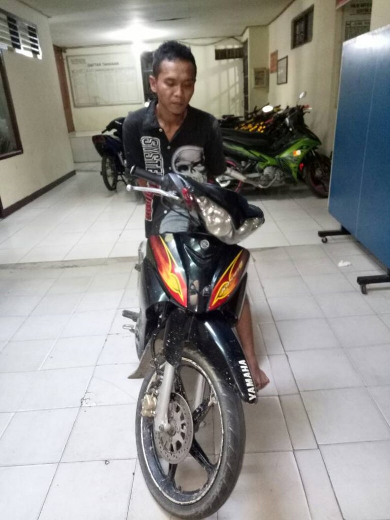 Dari tangan tersangka petugas mengamankan barang bukti berupa satu unit sepeda motor Yamaha Jupiter Z dan satu buah kunci T.