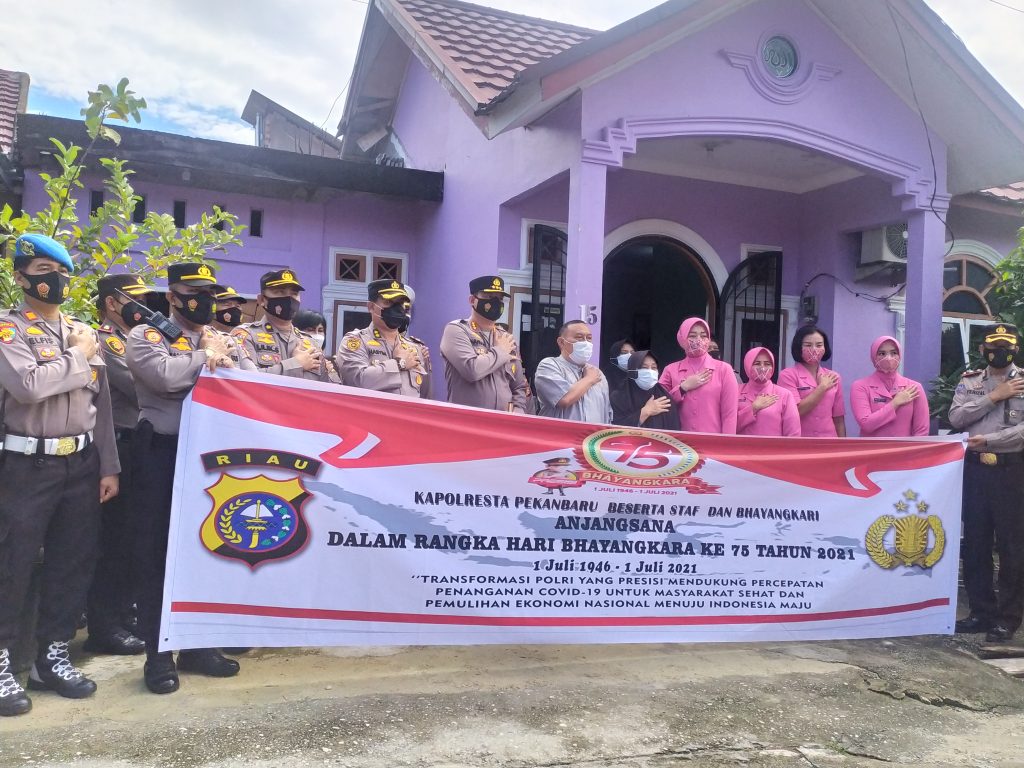 PEKANBARU, SIAGANEWS.ID – Sambut Hari Bhayangkara ke 75, Polresta Pekanbaru menggelar serangkaian acara diantaranya melaksanakan anjangsana ke purnawirawan Polri, Warakawuri dan menyambangi panti asuhan, Rabu (30/6/2021).