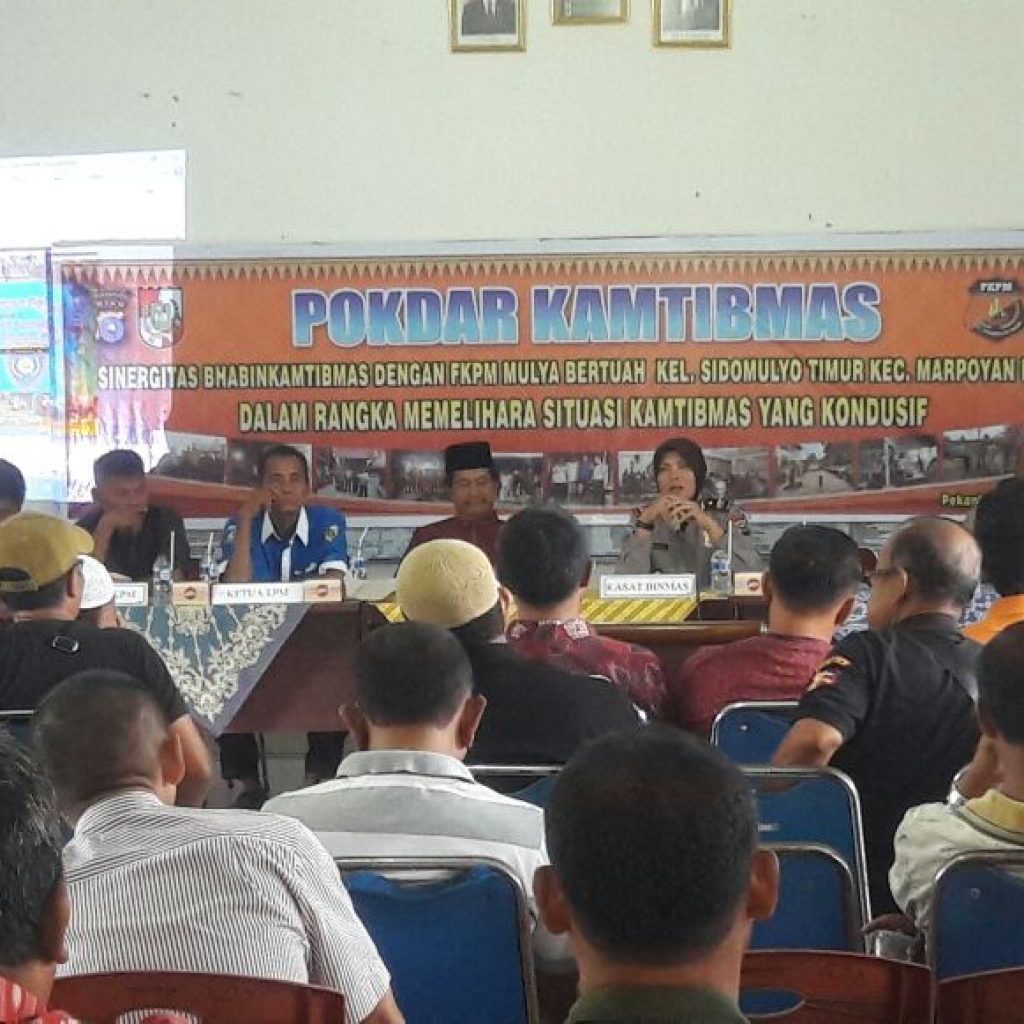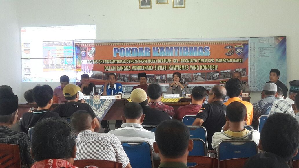“kelompok sadar keamanan dan ketertiban (pokdar) ini kita bentuk untuk bersama sama menjaga keamanan dan ketertiban bersama khususnya di kelurahan Sidomulyo Timur ini, dimana kita juga disini mensosialisasikan aplikasi Zapin masyarakat kepada warga kelurahan Sidomulyo Timur”, ucap Kasat Binmas Polresta Pekanbaru AKP Sunarti.
