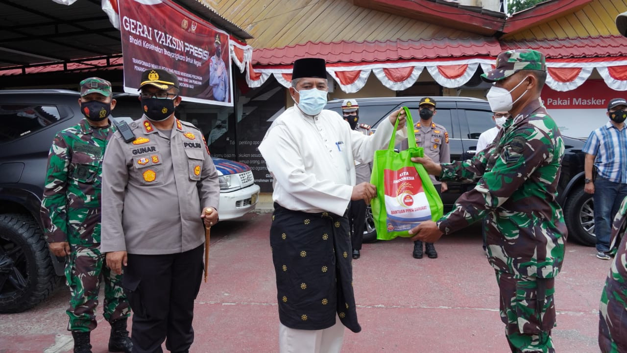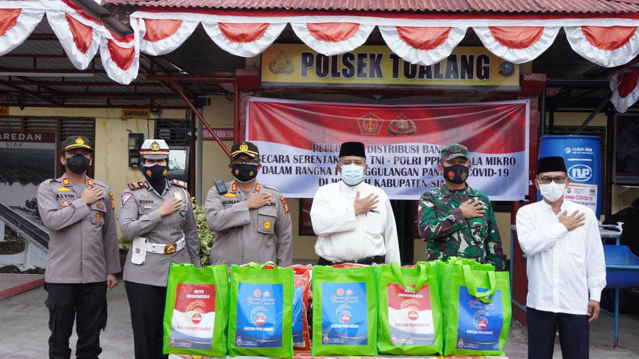 Bupati Siak Alfedri memberikan apresiasi atas penyaluran bantuan sosial berupa sembako dari pemerintah melalui Polri dan TNI yang dilaksanakan secara serentak se-Indonesia tanggal 16 juni 2001, termasuk Kabupaten Siak untuk warga yang berdampak penerapan kebijakan PPKM Mikro.