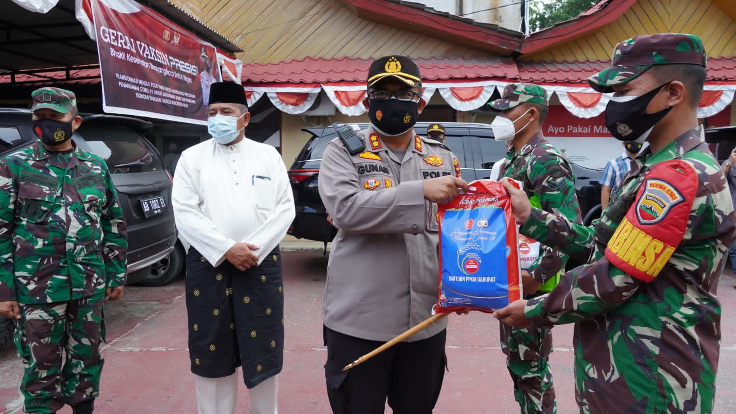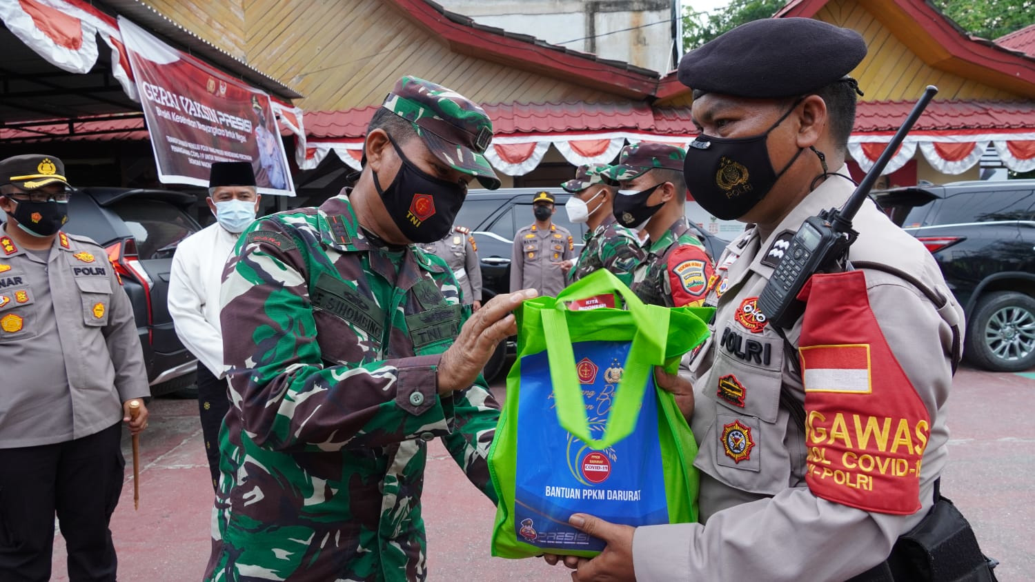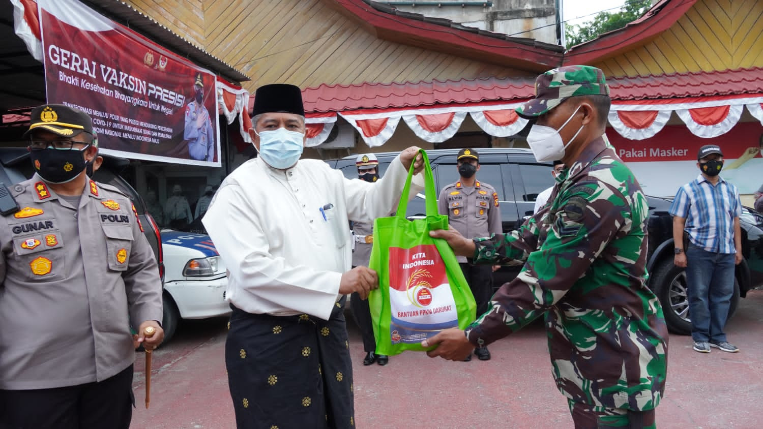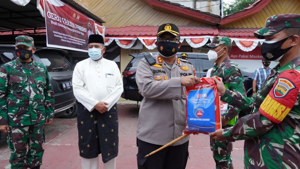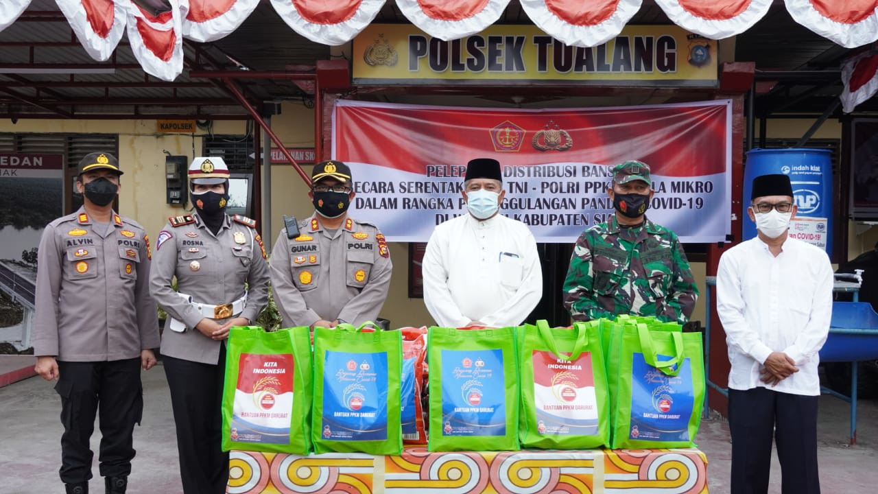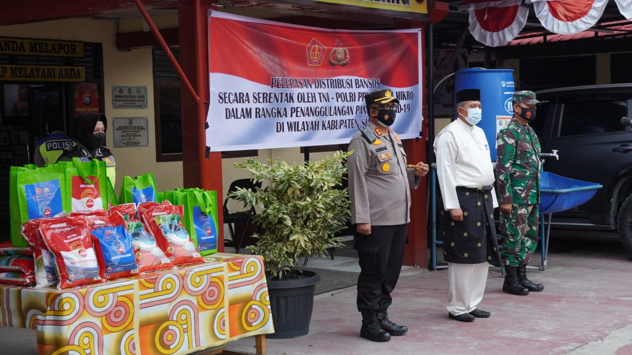 Bantuan sosial dari pemerintah melalui Polres Siak dan Kodim 0303 Bengkalis secara serentak untuk warga yang terdampak penerapan kebijakan PPKM Mikro di Kabupaten Siak melalui Bhabinkamtibmas dan Babinsa.