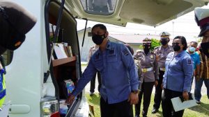 Pada kesempatan itu, AKBP Arif memberikan sejumlah buku bacaan terkait lalulintas untuk Pustaka keliling Polres Siak, yang diterima langsung oleh Kasat Lantas Polres Siak AKP Rosna Meilani SIK didampingi Kanit Dikyasa Aipda Zidefri SH.