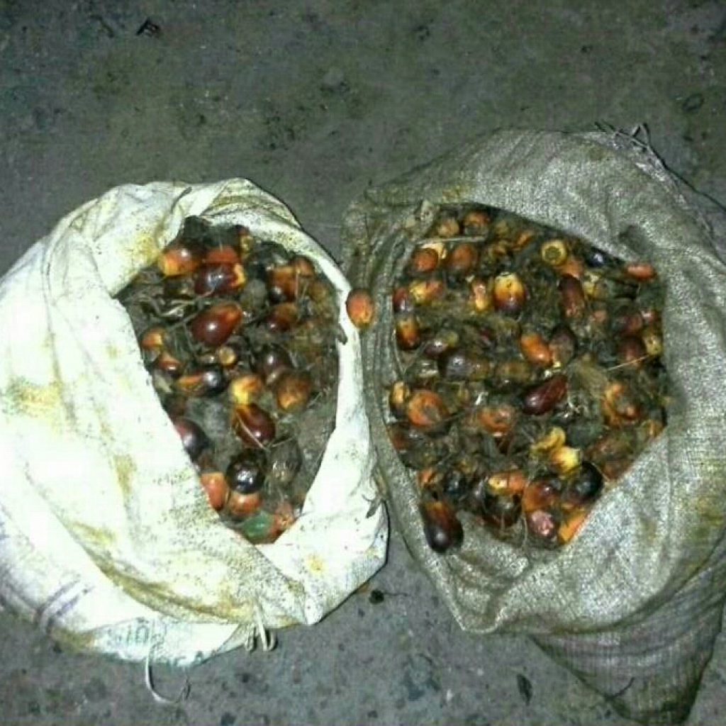 Barang bukti dua goni brondolan buah kelapa sawit seharga Rp 48 ribu turut dibawa.
