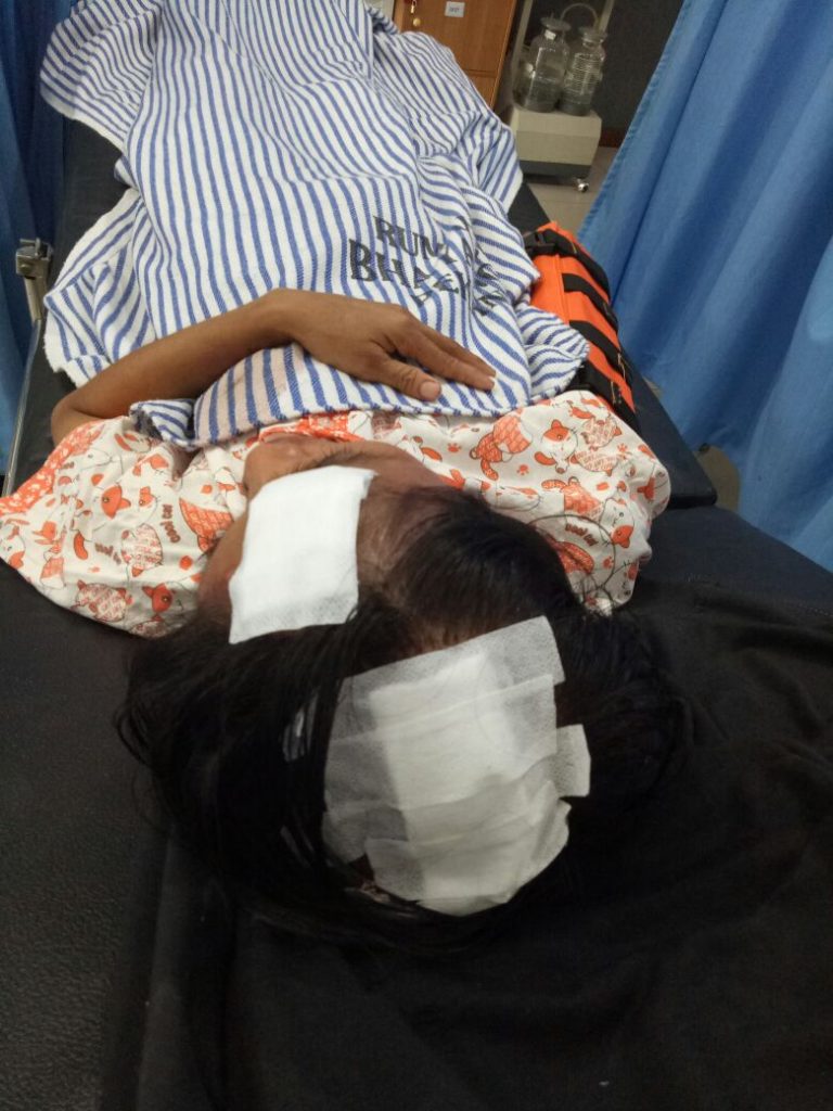 Dalam kondisi kesakitan, pelaku yang diduga satu orang tersebut kemudian memukul dengan benda yang diduga sangkur (sesuai keterangan korban).
