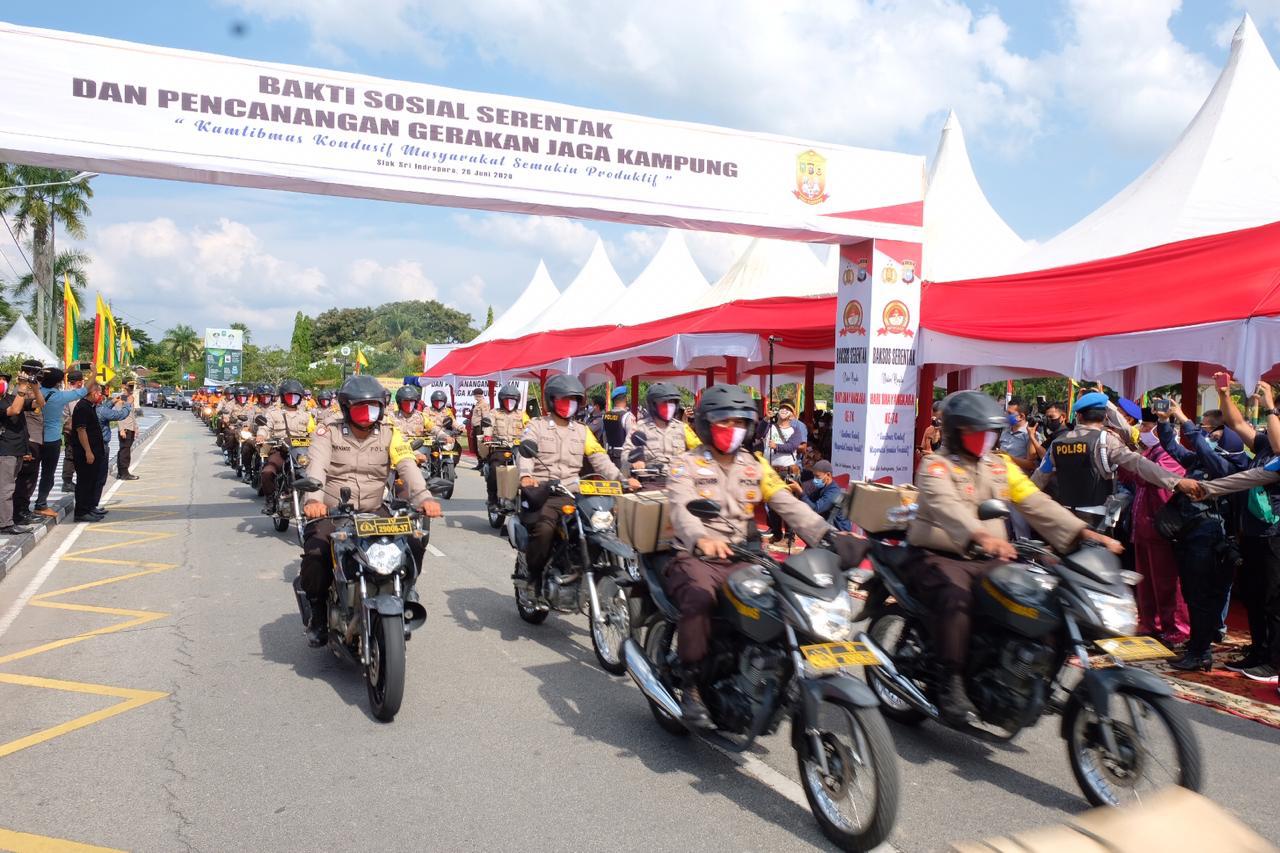 Di Siak sendiri, Kapolda menyalurkan bantuan sebanyak 1.300 paket bantuan sosial yang ditujukan kepada masyarakat diwilayah Kabupaten Siak dan 1 unit hand traktor untuk kampung Sengkemang.