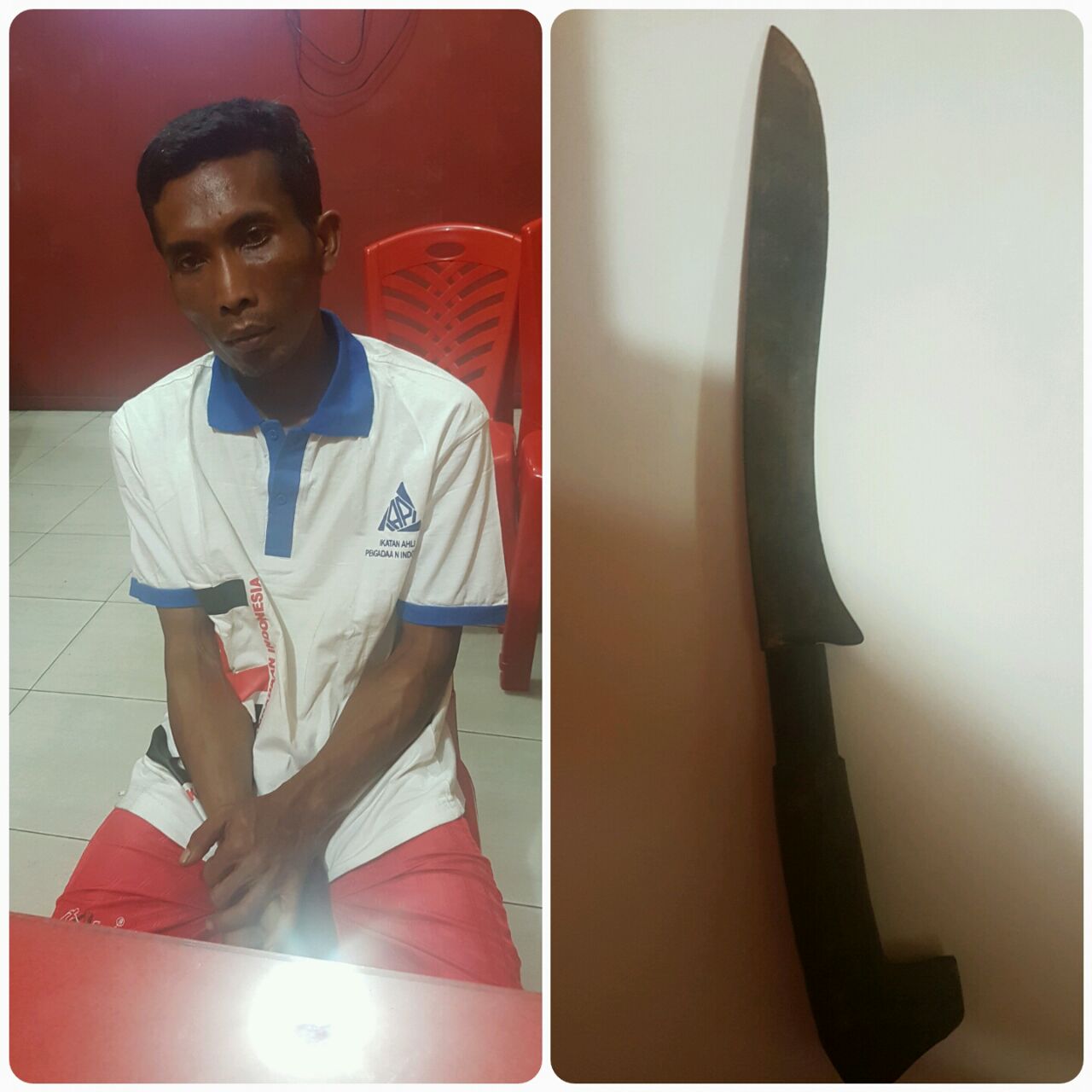 Kini pelaku yang telah mendarat di Pekanbaru langsung menjalani pemeriksaan diruang penyidik. Beberapa pertanyaan sempat tidak diakui oleh pelaku, tetapi saat ditunjukkan bukti sebilah pisau suami kejam tersebut tidak dapat mengelak.