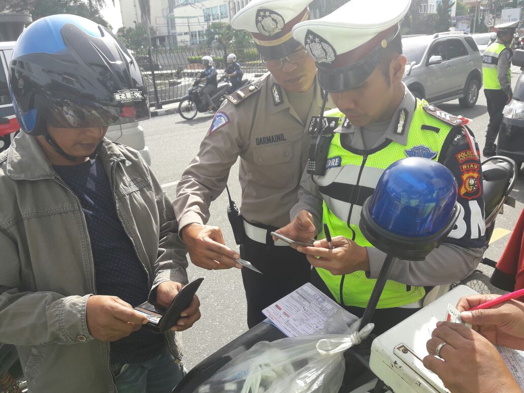PEKANBARU, SIAGANEWS.CO – Satuan Lalu Lintas Polresta Pekanbaru mulai berlakukan E-Tilang, aplikasi penilangan berbasis teknologi smartphone ini diterapkan mulai Senin (6/2).