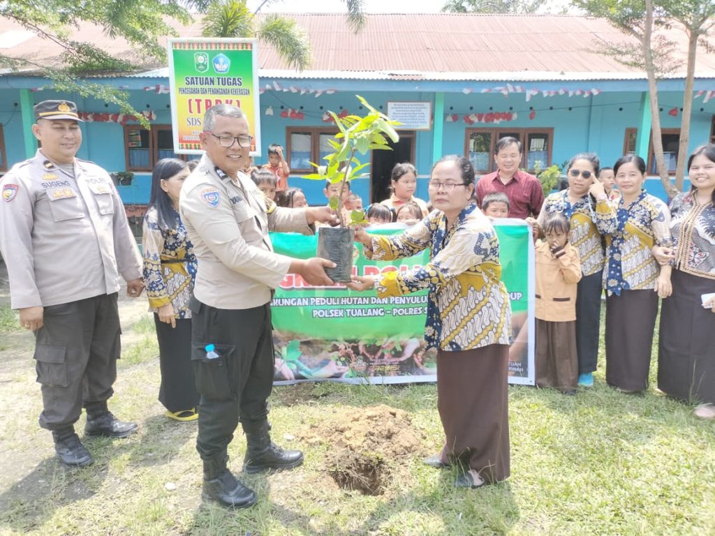 Tualang– Polsek Tualang melaksanakan kegiatan Green Policing di SDS Rehobot, Kampung Tualang, Kecamatan Tualang, Kabupaten Siak, Kamis (26/9/2025) pukul 11.00 WIB.