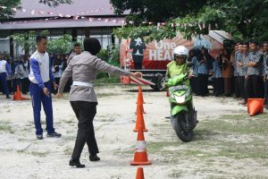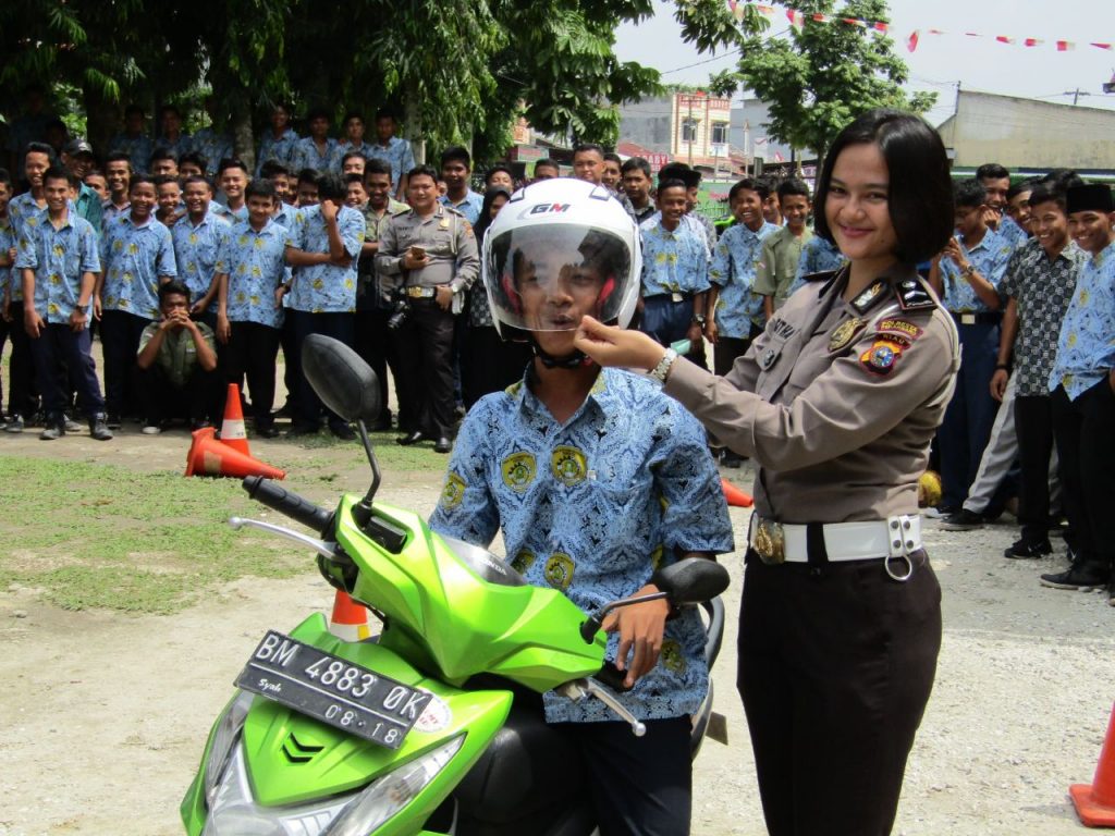 Tim memberikan penyuluhan serta sosialisasi terkait tertib berlalu lintas. Tidak hanya sekedar lisan, siswa juga diberikan kesempatan untuk mempraktekkan langsung cara berkendara yang aman dan baik.