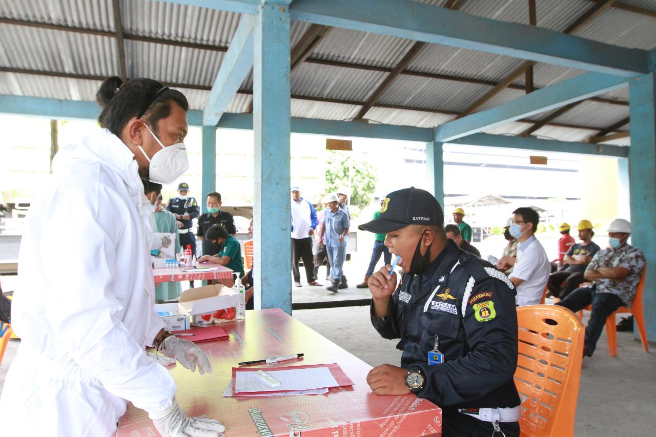 Sebanyak 300 lebih pekerja PT. Pangkalan Baru Indah dilakukan pemeriksaan/tes secara bergilir. Kegiatan berlangsung tertib dan lancar dengan menerapkan protokol kesehatan untuk mencegah penularan virus Covid-19.