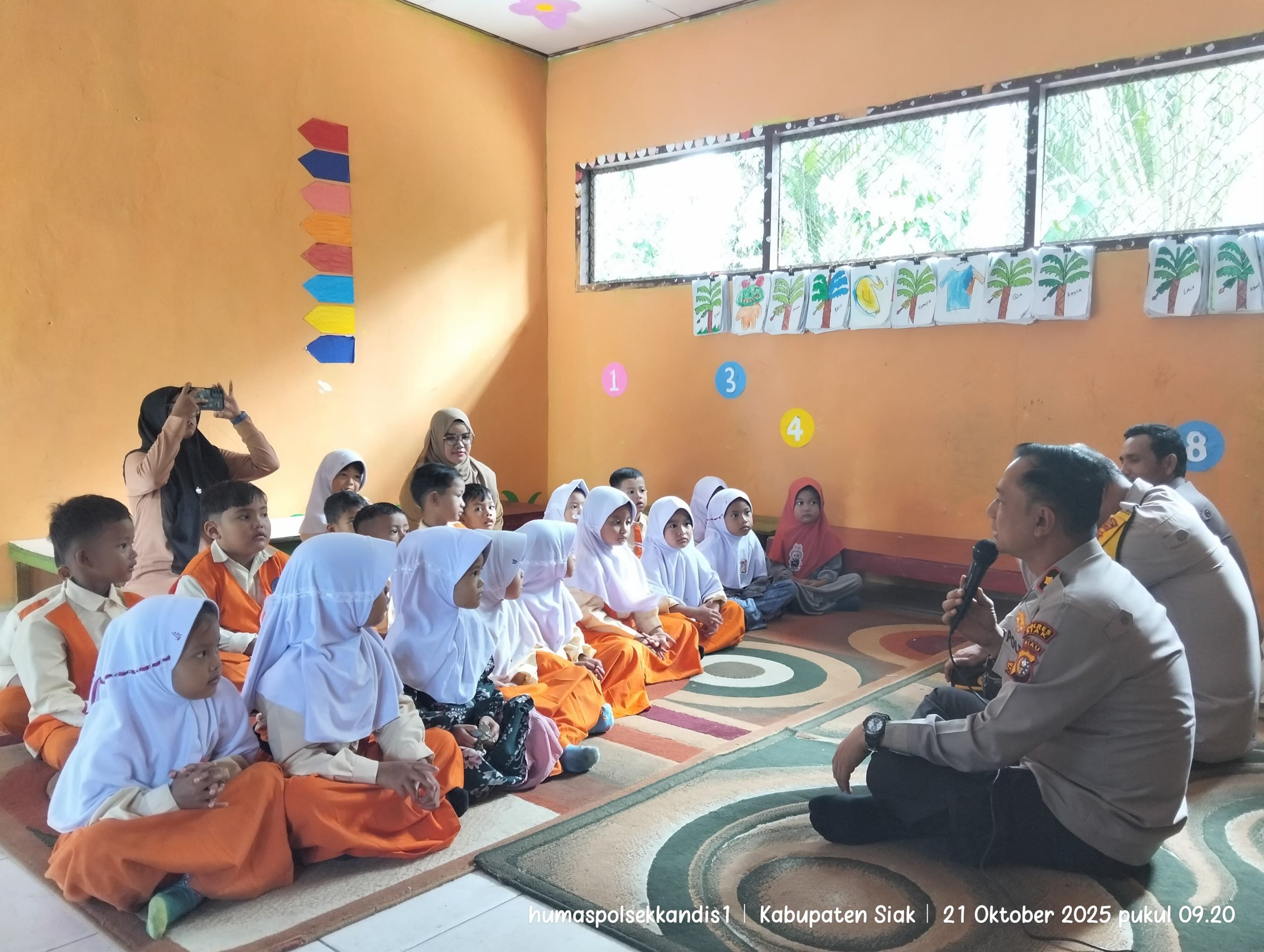SeRiau – Kapolsek Kandis, Kompol Herman Pelani. S. H. M. H beserta rombongan hadir di Sekolah Taman Kanak-Kanak (TK) Tunas Harapan Belutu, Kecamatan Kandis, Selasa, 21 Oktober 2025.