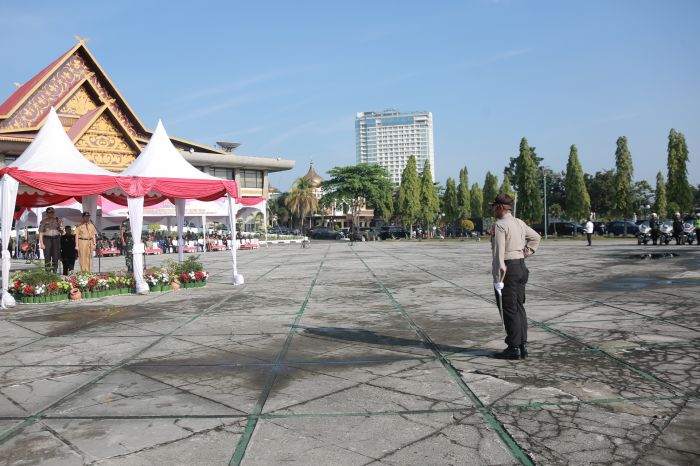 Kegiatan yang digelar di halaman Kantor Gubernur Riau ini juga dihadiri Kapolda Riau Irjen Pol Widodo Eko Prihastopo, Danrem 031/WB Muhammad Fadjar, Danlanud Roesmin Nurjadin Marsma Ronny Irianto Moningka, Kasatpol PP Riau Zainal Z.