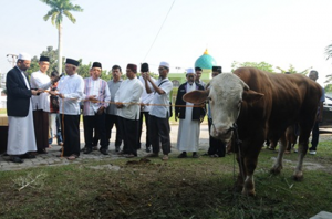 Untuk penyembelihan hewan kurban tersebut langsung dilakukan oleh Pelaksana Tugas (Plt) Kepala Biro Kesra yang juga menjabat Kepala Badan Pengelola Keuangan dan Aset Daerah (BPKAD) Provinsi Riau, Syahrial Abdi.