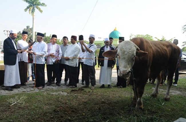 SIAGANEWS.CO – Indul Adha 1439 H disambut gembira seluruh umat muslim seluruh dunia. Tidak terkecuali di Provinsi Riau, penyembelihan hewan kurban dilaksanakan di Masjid Raya, Agung An-Nur, Pekanbaru, Kamis 24 Agustus 2018.