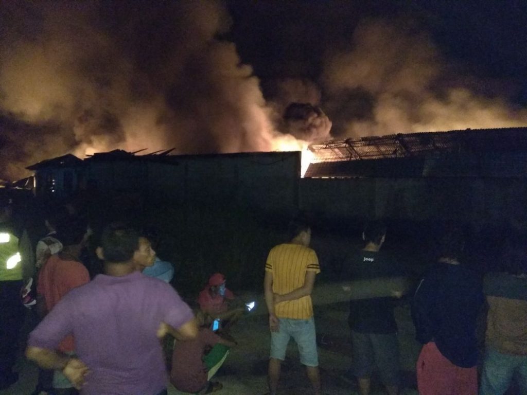 Api tampak membumbung tinggi dari lokasi kejadian, peristiwa kebakaran tersebut terjadi pada pukul 21.30 WIB.