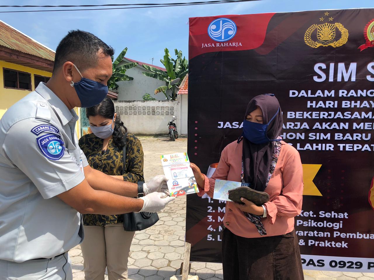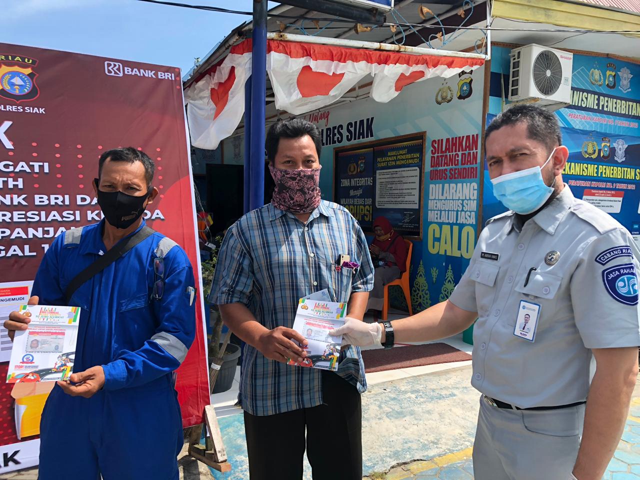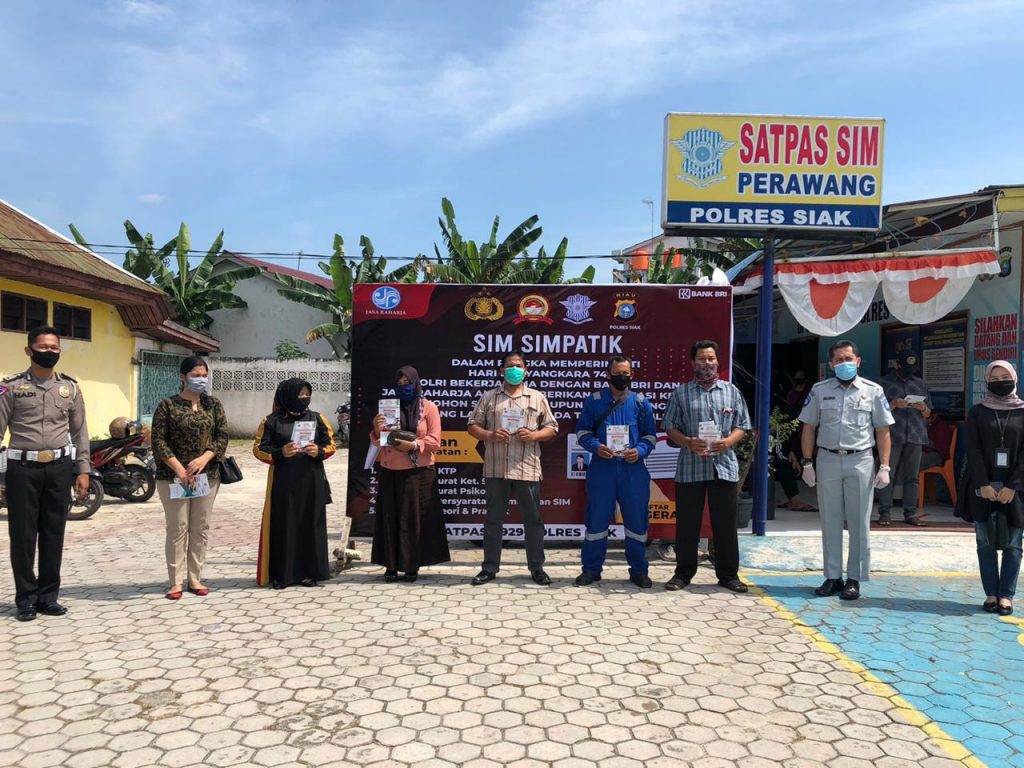 Tualang,Bertepatan dengan Hari Bhayangkara yang ke 74, bekerjasama dengan Bank BRI dan Jasaraharja Polres Siak memberikan kesempatan kepada masyarakat kabupaten Siak yang lahir pada 1 Juli untuk bisa memperoleh Surat Izin Mengemudi ( SIM ) secara Gratis baik pembuatan SIM baru maupun perpanjangan.