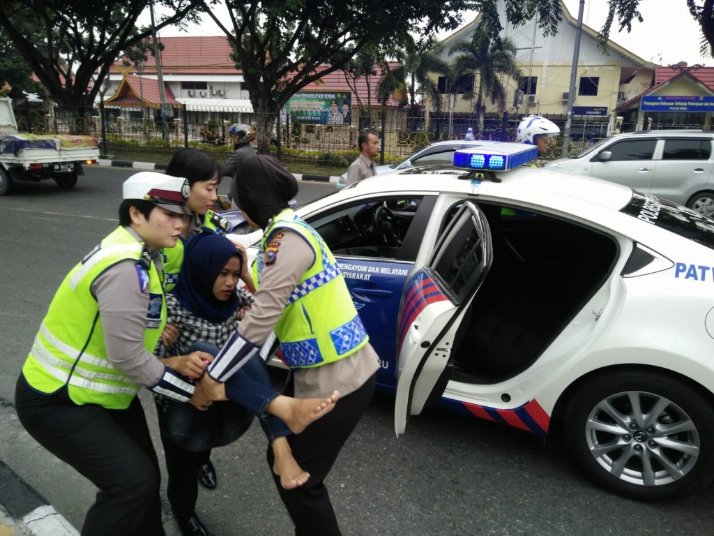 PEKANBARU, SIAGANEWS.CO – Aksi Srikandi Polwan dari Direktorat Lalu Lintas Polda Riau dan Satuan Lalu Lintas Polresta Pekanbaru yang bergerak cepat membantu korban kecelakaan Sabtu (5/3) Pagi tadi sekitar pukul 07.30 wib di Jalan Jendral Sudirman depan menara Bank Riau Kepri cukup menarik perhatian masyarakat yang melintas di sekitar lokasi. Ini aksi Polwan tersebut yang berhasil di abadikan oleh Siaganews.co saat di lokasi kejadian.