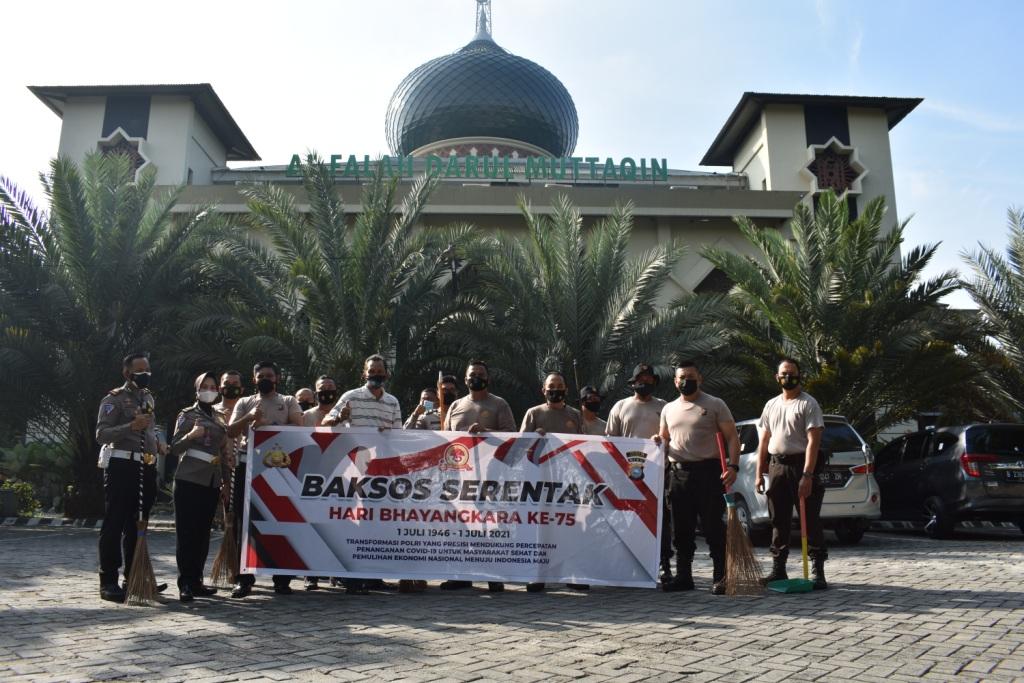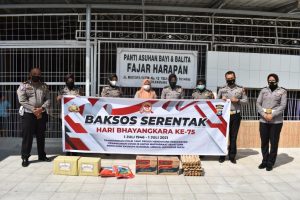 “jelang Hari Bhayangkara Ke-75, Polresta Pekanbaru melakukan Bakti Sosial di tempat ibadah dan memberikan santunan berupa sembako ke Panti Asuhan”, terang Kasat Lantas.