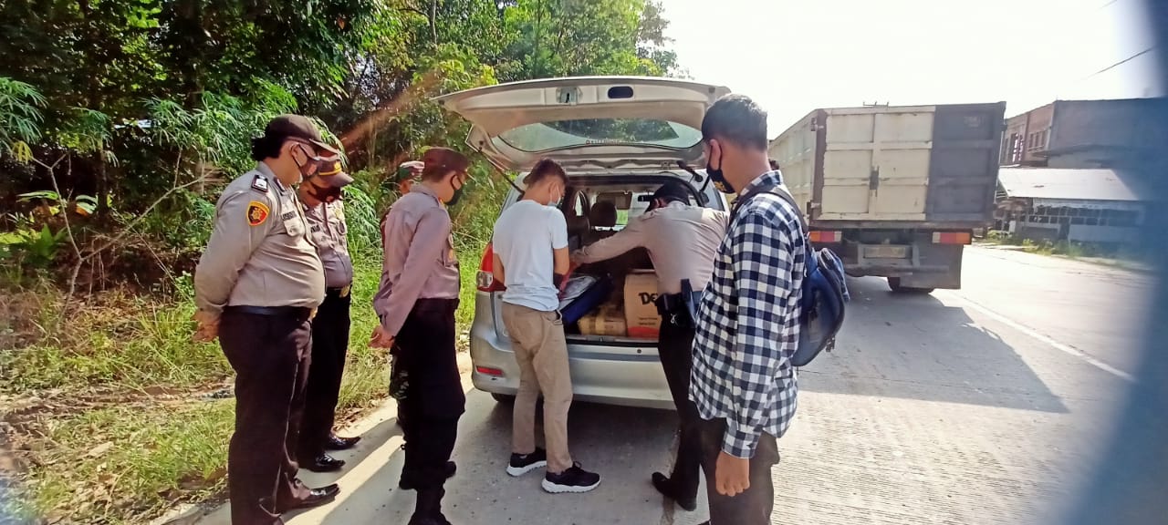 Posko yang didirikan jelas Kapolsek, mulai melakukan pengamanan terpadu. Seperti pemeriksaan protokol kesehatan, dan rapid test antigen bagi pengendara dengan plat nomor dari daerah lain.