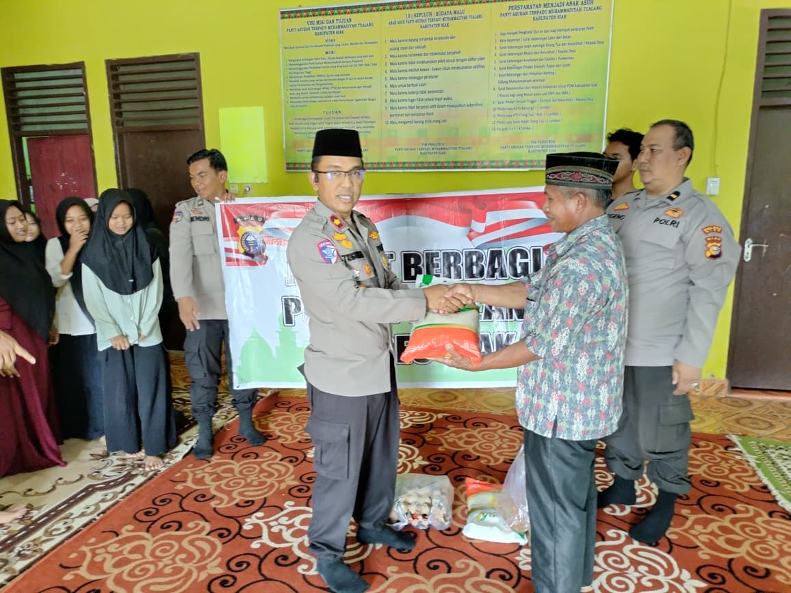 Perawang, siaganews.id -Sebagai bentuk kepedulian terhadap masyarakat, Polsek Tualang melaksanakan kegiatan Jumat Berkah berbagi dengan menyalurkan bantuan sembako kepada Yayasan Panti Asuhan Muhammadiyah Kampung Perawang Barat, Kecamatan Tualang, Kabupaten Siak, Jumat (26/12/2025).