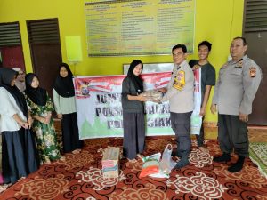 Bantuan diserahkan langsung oleh Kapolsek Tualang kepada pimpinan Yayasan Panti Asuhan Muhammadiyah, Bapak Paiman.