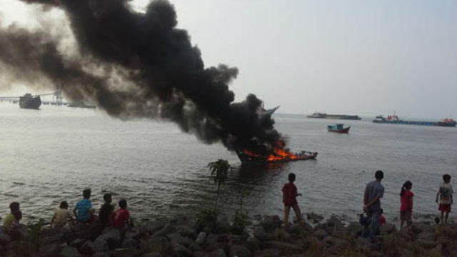 SIAGANEWS.CO- Kapal Motor GT 5 yang bermuatan bahan bakar dan tabung gas elpiji terbakar di Dermaga TPI Patimura, Kelurahan Dumai Kota, Kecamatan Dumai Kota, Ahad (1/11/15) terbakar sekitar pukul 13.50 WIB.