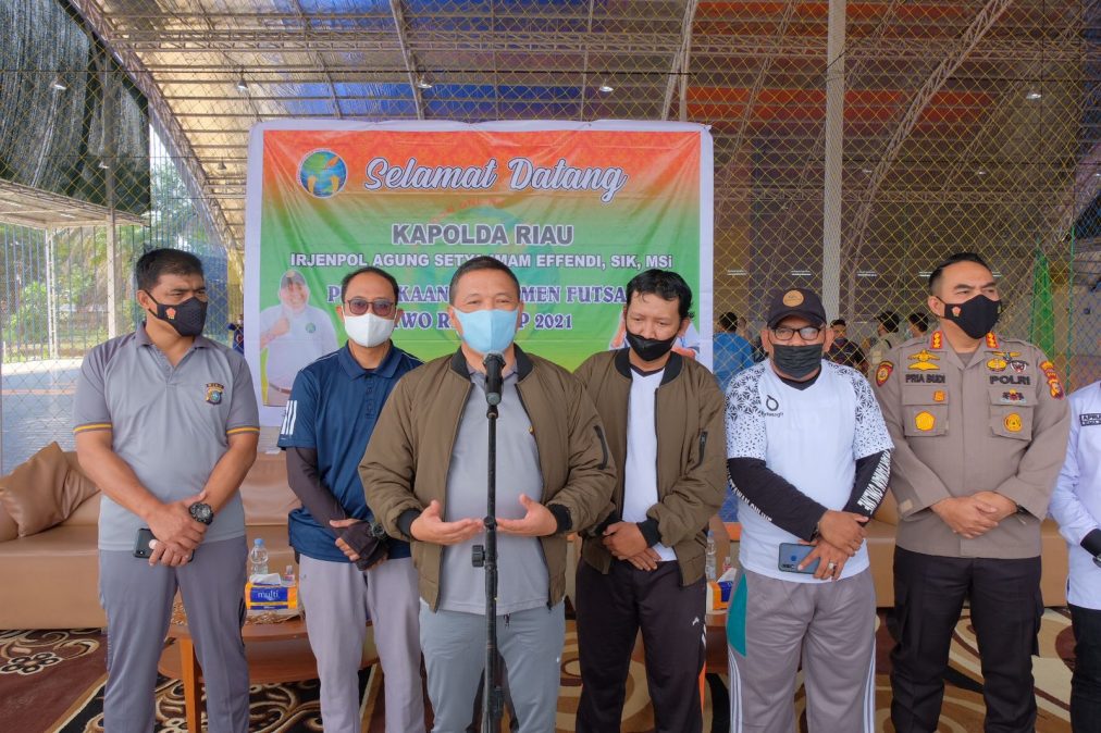 PEKANBARU – siaganews.id – Kapolda Riau Irjen Pol Agung Setya Imam Effendi, Jumat pagi (29/10/2021) membuka secara resmi Turnamen Futsal Ikatan Wartawan Online (IWO) Cup Pertama 2021.