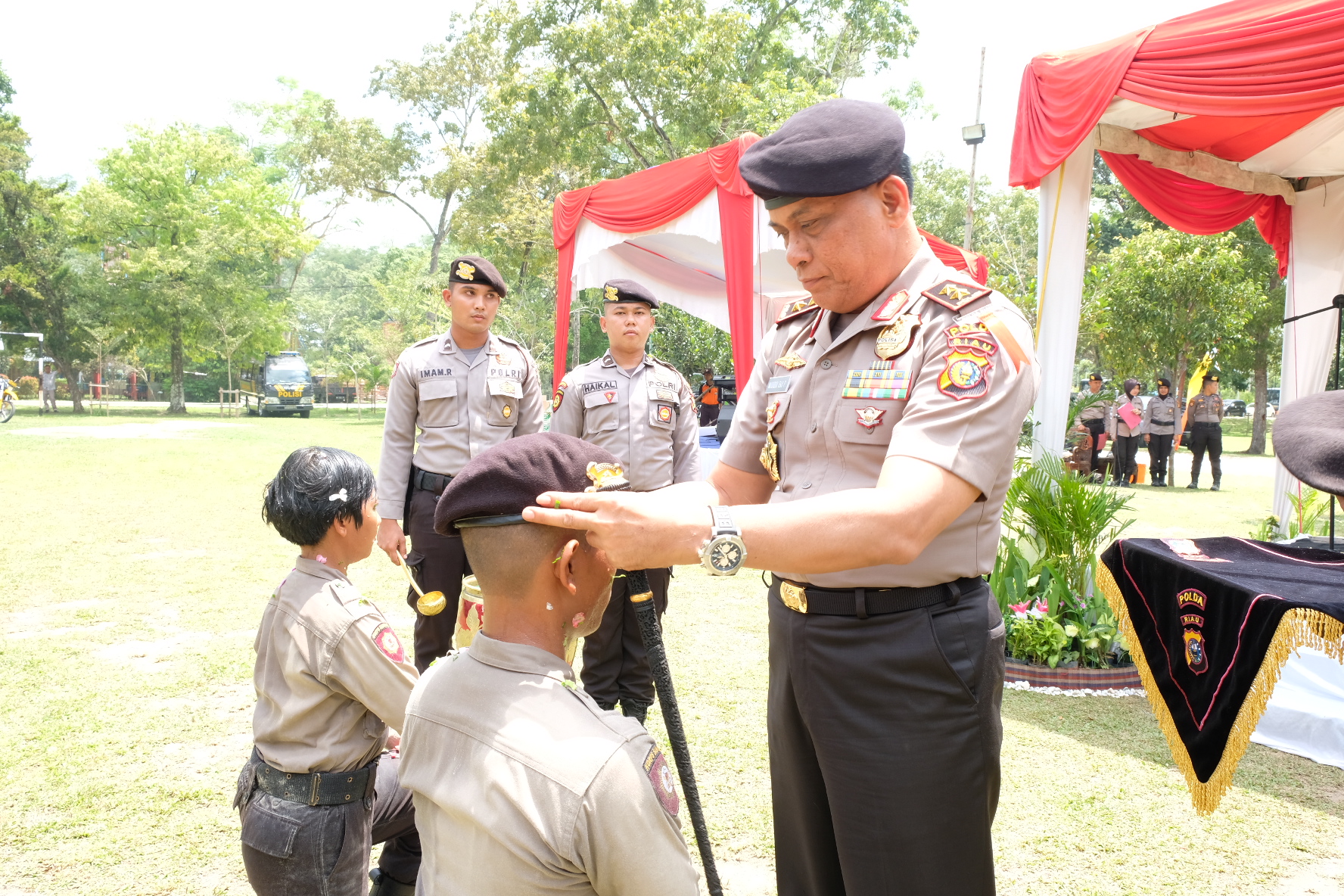 Turut hadir dalam upacara pembareta tersebut diantaranya adalah Wakapolda Riau, seluruh pejabat utama Polda Riau.