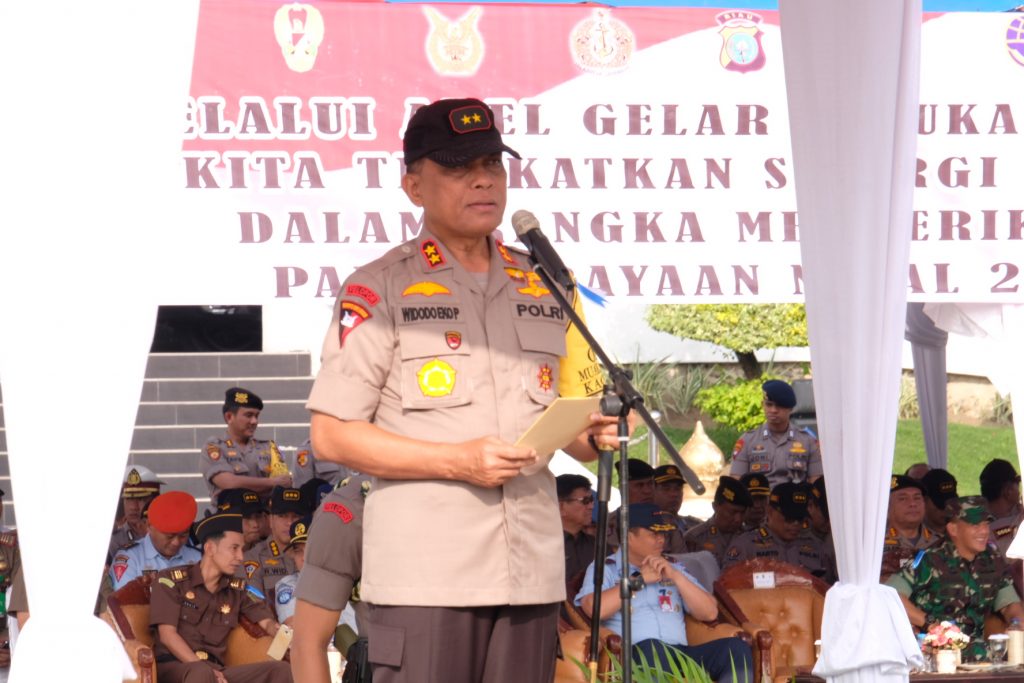 PEKANBARU, SIAGANEWS.CO – Kepala Kepolisian Daerah Riau Irjen Pol. Drs. Widodo Eko Prihastopo. M. M pimpin langsung apel gelar pasukan Ops Lilin Muara Takus 2018 pengamanan Natal 2018 dan Tahun Baru 2019. Kegiatan dilaksanakan di halaman Kantor Gubernur Riau. Jumat (21/12) pukul 08.00 Wib.