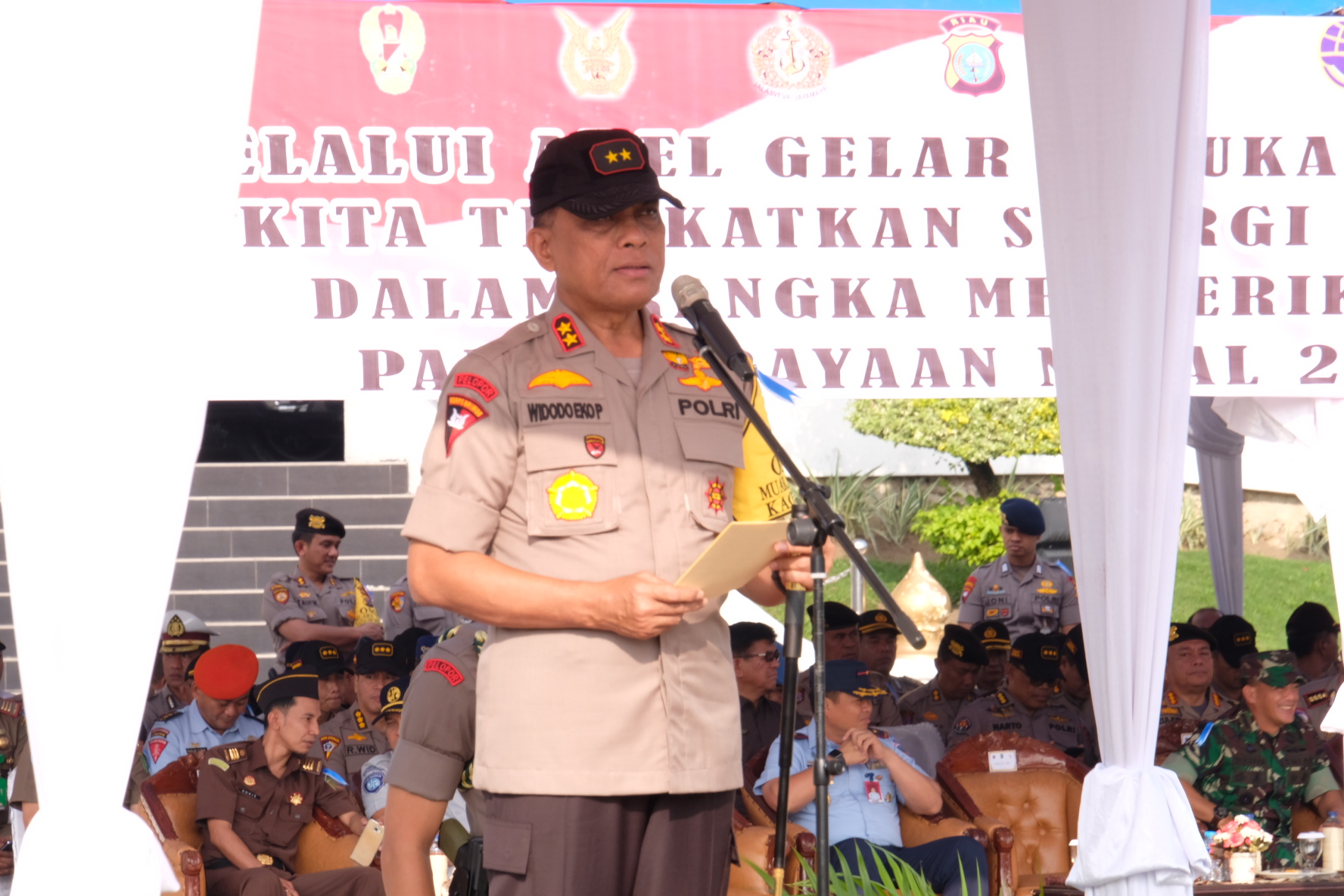 Kapolda Riau dalam hal ini membacakan amanat dari Kapolri mengatakan pada hari ini di lakukan apel kesiap siagaan secara serentak di seluruh Indonesia dalam pelaksaan natal dan tahun baru. Situasi natal dan tahun baru digunakan masyarakat untuk berkumpul bersama dalam merayakan.