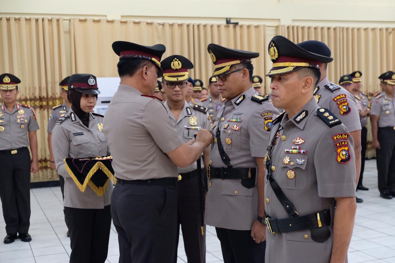 Selanjutnya kepada Pejabat yang baru, AKBP Andri Sudarmadi S.IK.,M.H. Kapolda juga mengucapkan selamat atas promosi jabatannya dan selamat bekerja. Ia juga berharap pejabat baru segera selesaikan tugas-tugas sebelumnya dari pejabat yang lama serta kepada Ibu Eva Sudarmadi agar senantiasa membantu dan mendukung serta mendampingi suami dalam pelaksanaan tugas serta berperan aktif dalam organisasi Bhayangkari Daerah Riau.