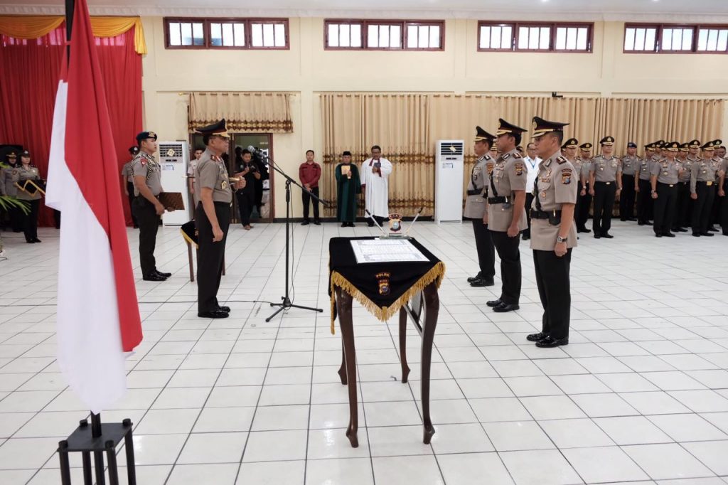 PEKANBARU, SIAGANEWS.CO – Kapolda Riau Irjen Pol Drs Widodo Eko Prihastopo MM pimpin Serah Terima Jabatan Dir Pam Obvit Polda Riau dan Pelantikan Dir Tahti Polda Riau yang dilaksanakan di aula Bhayangkara Sat Brimob Polda Riau. Rabu (20/2/2019).