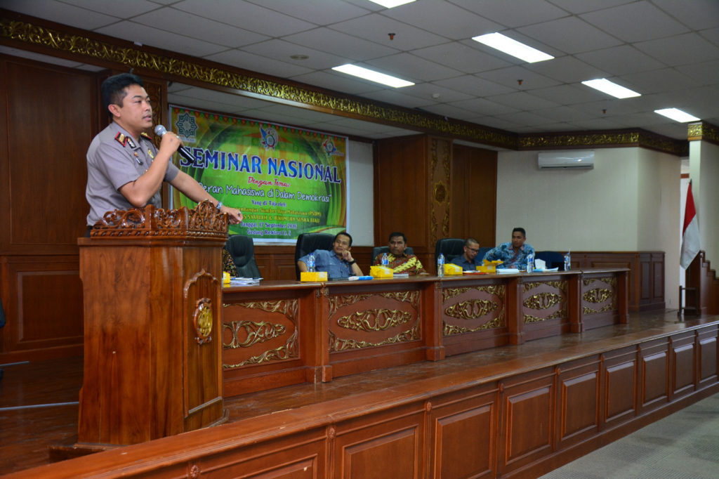 PEKANBARU, SIAGANEWS.CO- Kapolresta Pekanbaru Kombes Pol Tonny Hermawan menjadi salah satu narasumber Seminar Nasional dgn tema “Peran Mahasiswa Didalam Demokrasi” yang ditaja oleh BEM Fak. Syariah dan Hukum UIN Suska Riau, Sabtu (17/9/2016) pagi.