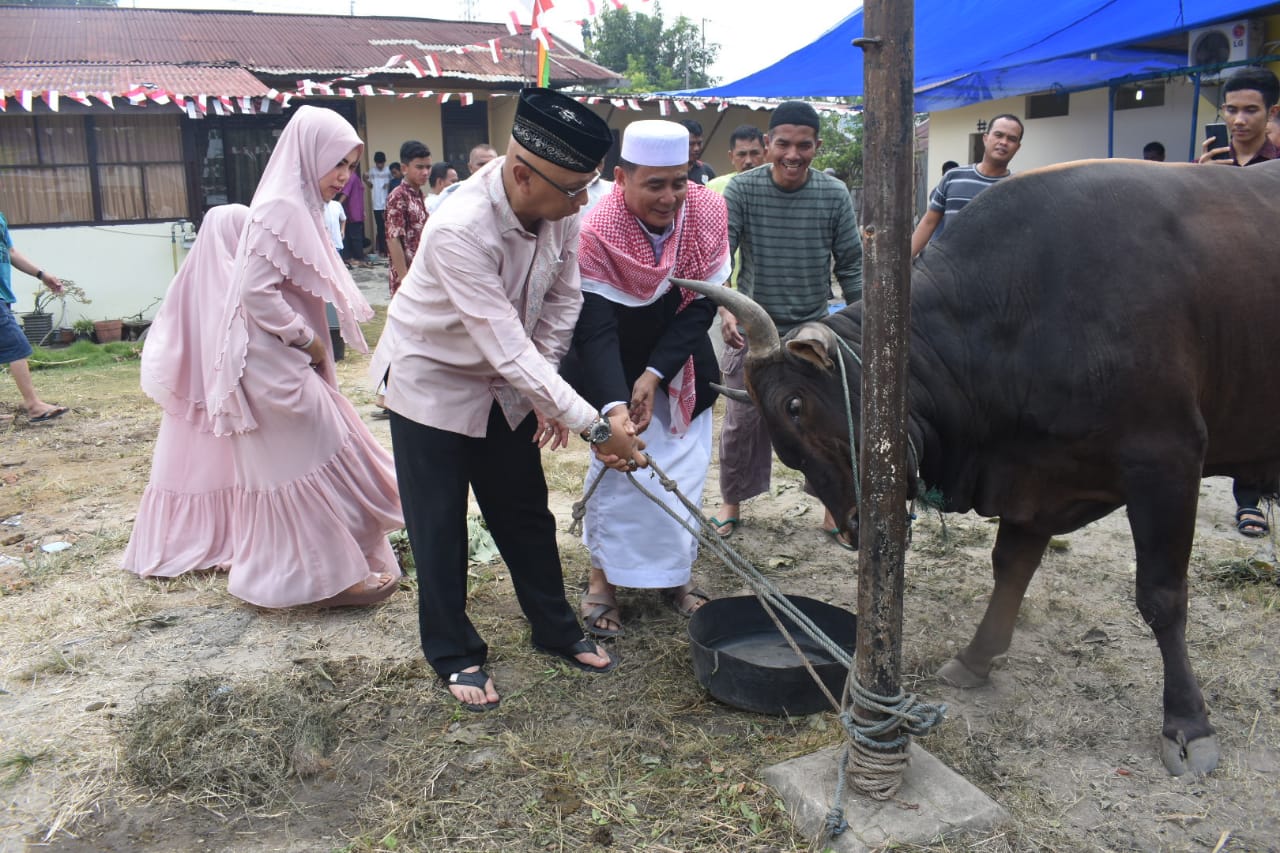 Polresta Pekanbaru Idul Adha Idul Adha 1440 Hijiriah tahun 2019 ini kembali melaksanakan pemotongan hewan kurban di Mushola Alfalah Asrama Polresta Pekanbaru Jalan Sisingamangaraja Kecamatan Limapuluh Kota Pekanbaru.
